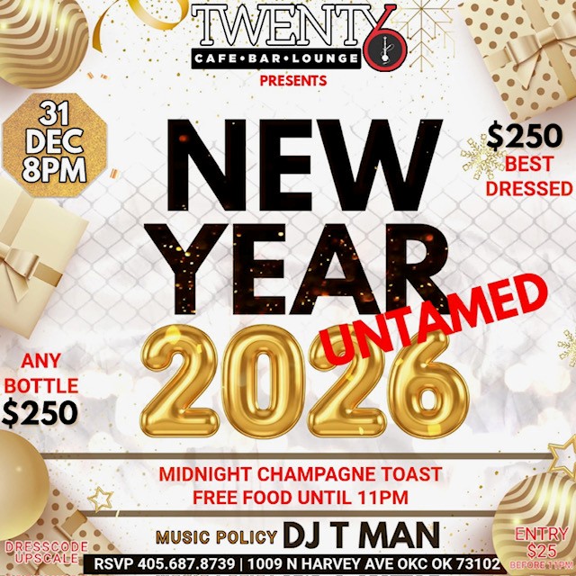Celebrate New Year's Eve at Twenty6 Lounge in Midtown. Midnight Champagne Toast Free food until 11pm $250 Best Dressed DJ T Man |
