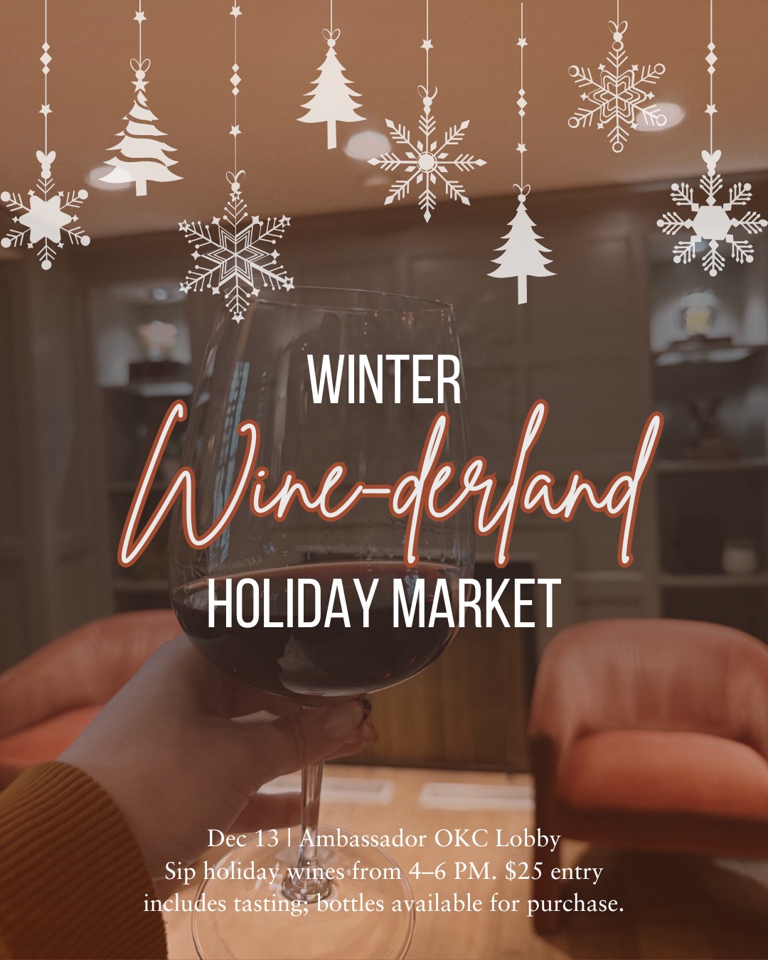 Ambassador Hotel Oklahoma City 1200 N. Walker Ave., Oklahoma City, OK, United StatesGet ready to sip, shop, and celebrate wine at our Winter Wine-derland Holiday Market - the perfect place to find the perfect Christmas gift! Welcome to our Winter Wine-derland Holiday Market!🍷✨ Join us at Ambassador Hotel, Oklahoma City for a festive day of shopping, sipping, and celebrating. Sip on delicious wines and soak in the...