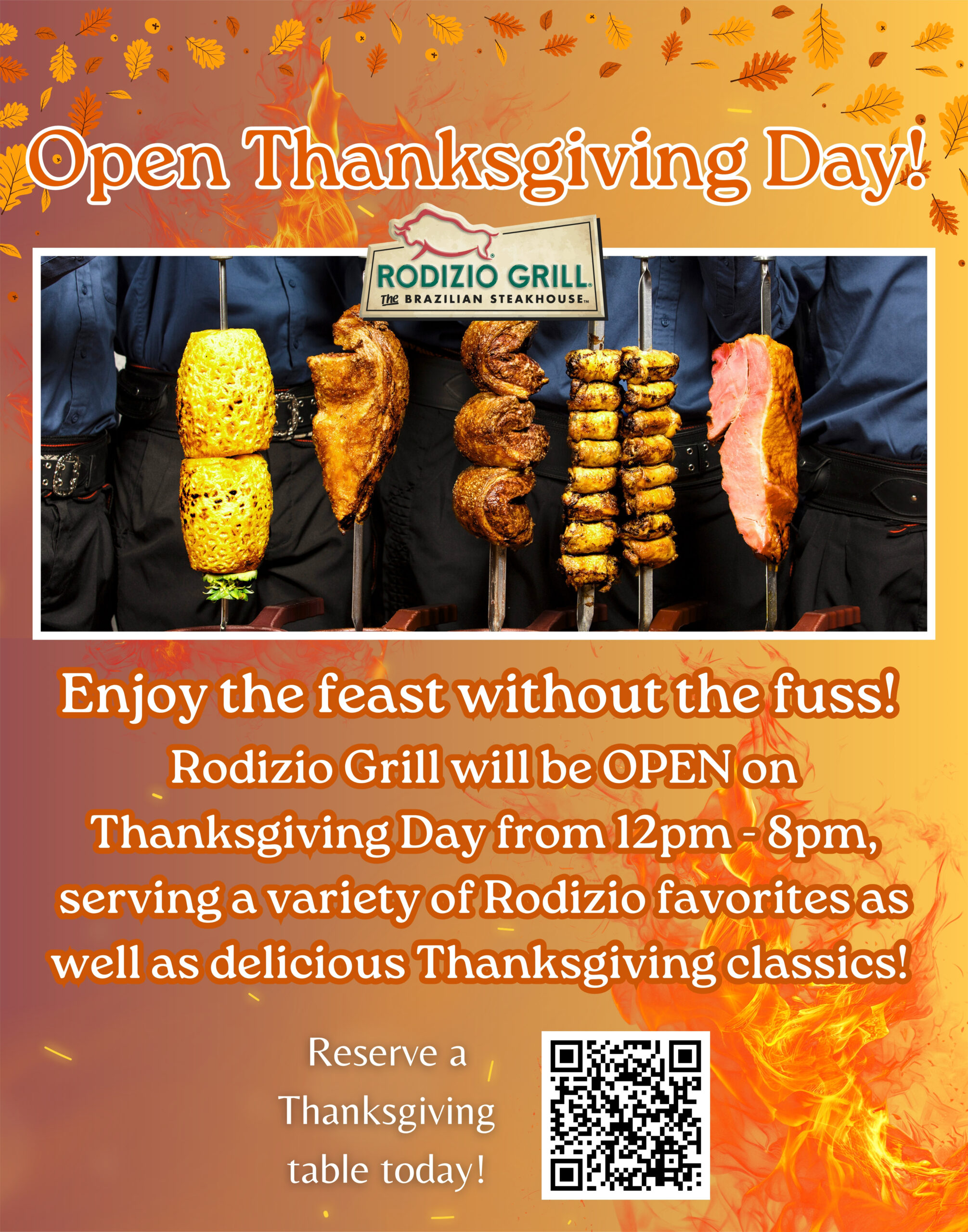On November 10th, 11th, 12th, and 13th of November, all veterans will receive a Full Rodizio for FREE with the purchase of another at Rodizio Grill as a thank you for their sacrifice and service to our country. Free Veteran Full Rodizios: Monday, November 10th thru Thursday, November 13th Only for one Full Rodizio per...