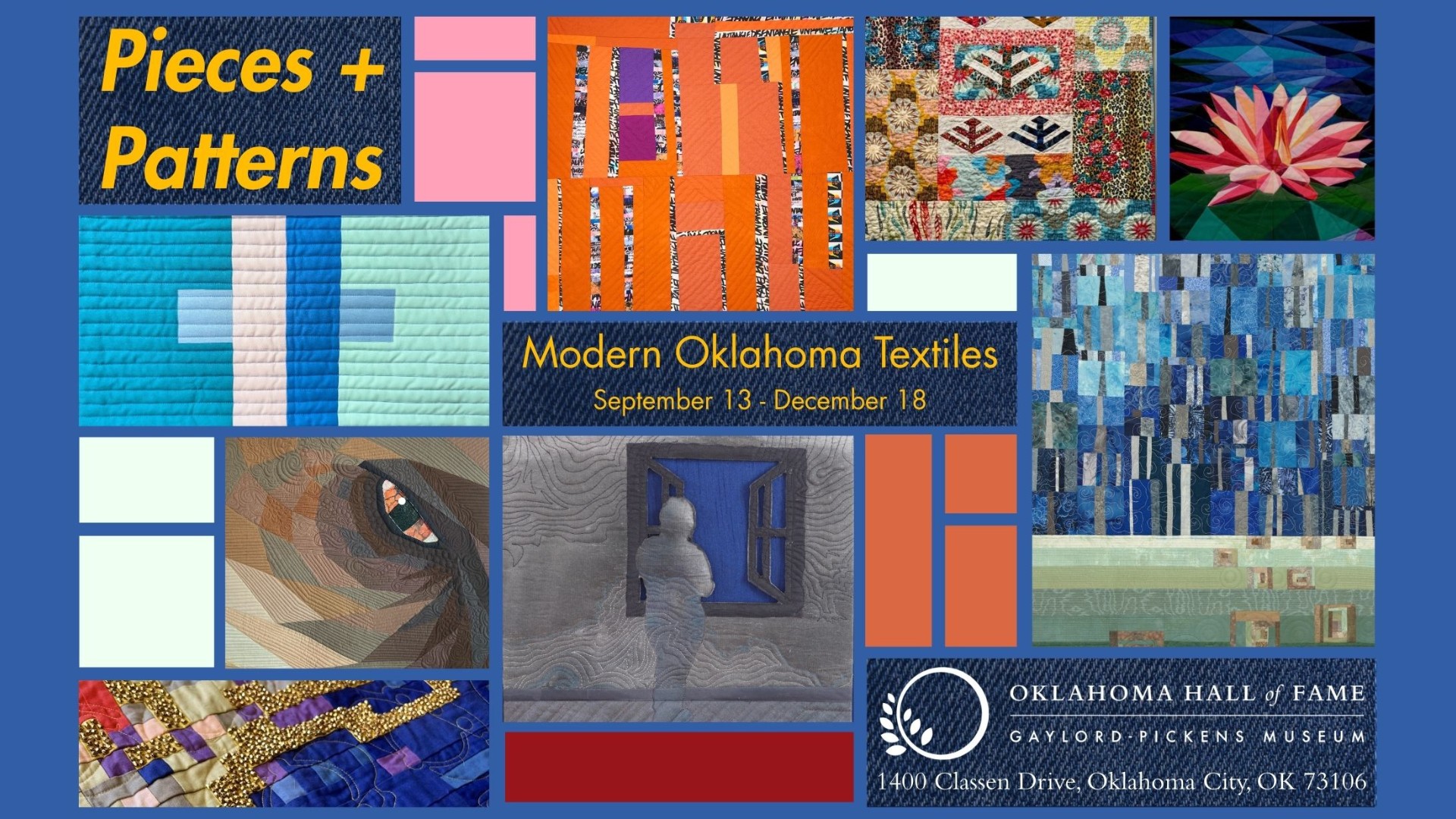 Join us for a free reception for "Pieces + Patterns: Modern Oklahoma Textiles." This exhibit explores the works of 15 contemporary Oklahoma textile artists and showcases their ability to transform quilting and textile traditions into vibrant, contemporary expressions of identity, place, and history. Exhibit is ppen Saturday, September 13 through Thursday, December 18. Artist reception...