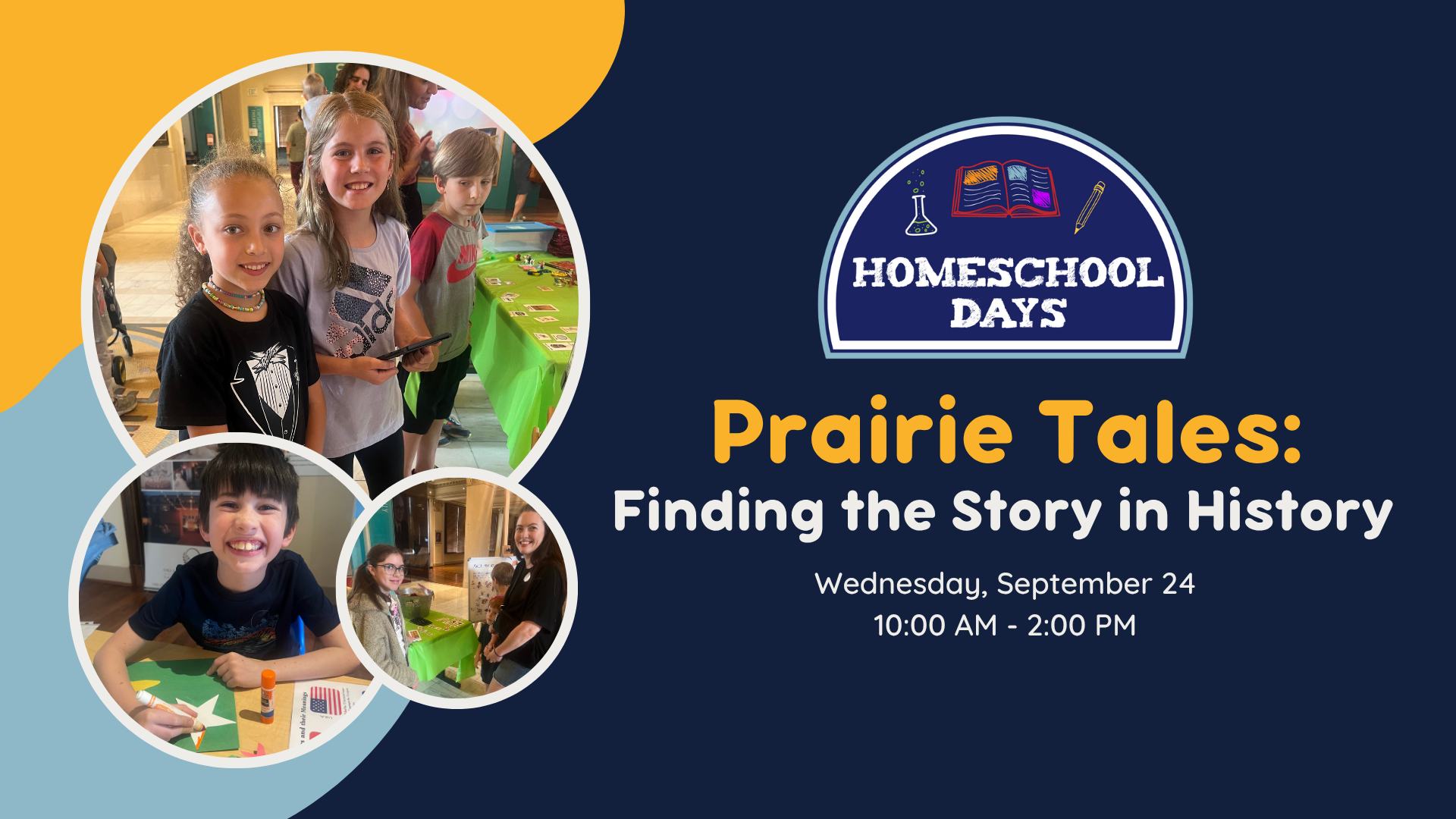 "Homeschool Day - Prairie Tales: Finding the Story in History" is all about uncovering history's mysteries and learning to think like a historian. Homeschool Day is a come-and-go event with ongoing crafts and activities for homeschool families and co-ops. Pre-registration is required by Sunday, September 21 at 11:00 PM.